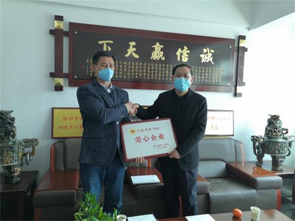 最后泉山区红十字会给AK网颁发了爱心企业牌匾,并合影留念。