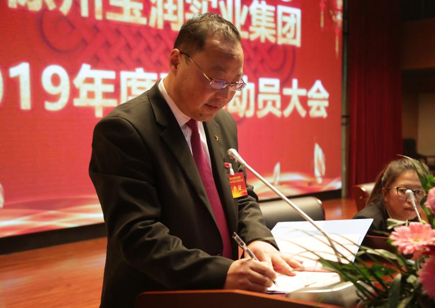 集团董事长张爱平同志作了题为《以奋斗者的底色、奔跑者的姿态全力推进宝润集团高质量、快速的发展 》的重要讲话。回顾了集团在2018年取得的成就,指出工作中存在的问题,并步署2019年主要工作安排。强调三点工作要求(一)落实经营指标,努力完成全年目标任务。想尽办法,克服困难,全力保障目标任务的顺利完成。(二)突出固本强基,确保实现安全生产。进一步强化安全意识,严格落实安全责任制,用铁的手腕抓安全管理,做到安全生产“零事故”,安全故事“零”容忍。(三)强化责任意识,凝聚事业发展正能量。增强大局意识,始终与集团保持高度一致。