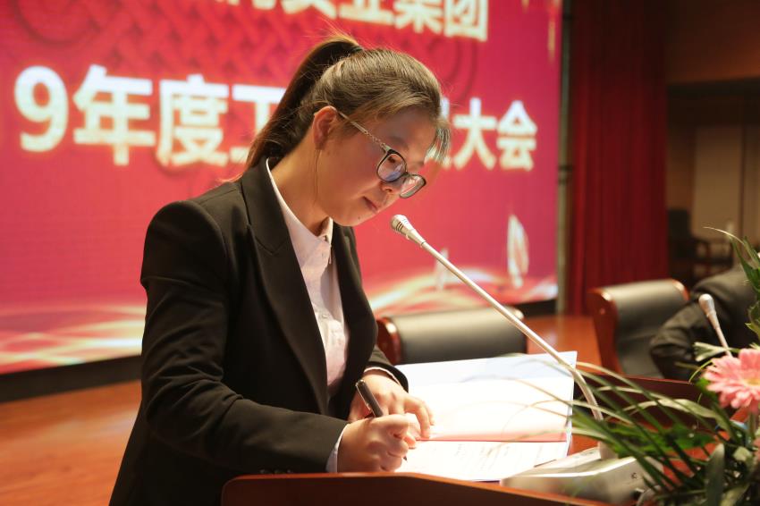 在庄重和谐的氛围中,集团董事长张爱平同志与集团各公司签订2019年工作责任状。