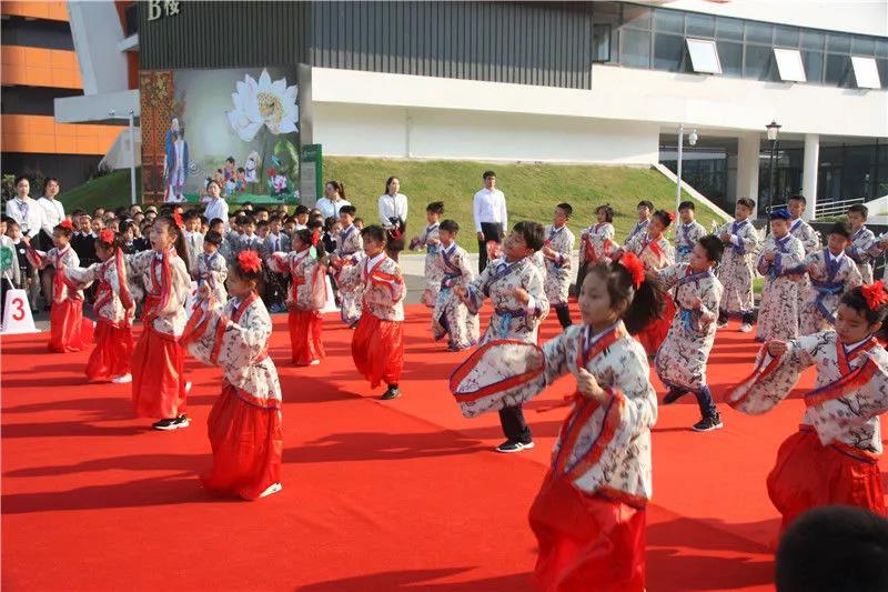 三(1)班全体学生身穿汉服,表演《孔子爷爷》
