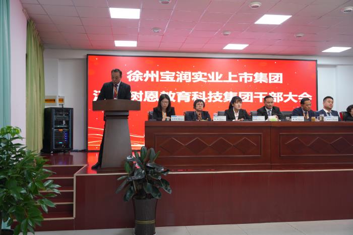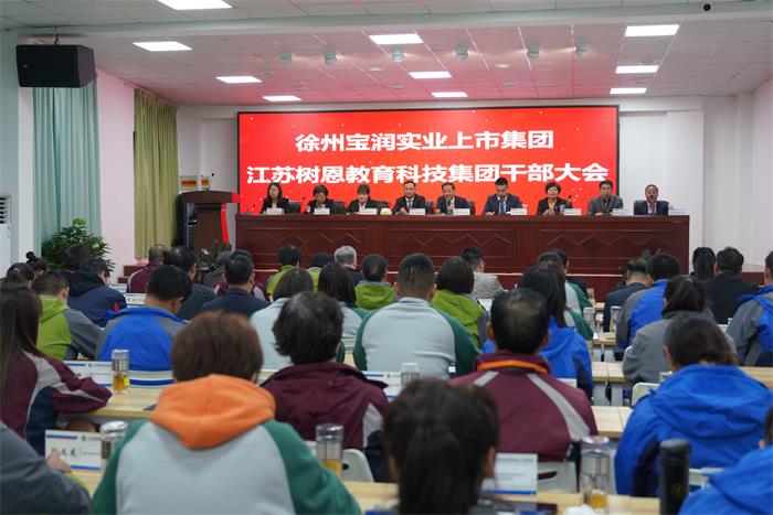 2020年10月10日,徐州宝润实业上市集团、江苏树恩教育科技集团干部大会在徐州市树恩外国语小学举行。徐州宝润实业上市集团董事局主席、董事长张爱平出席会议并作重要讲话。集团董事局成员及下属产业集团经营团队、职能部门主要负责人参加会议。